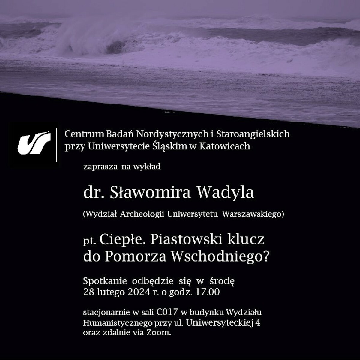 W środę 28 lutego 2024 r. o godz. 17.00 dr Sławomir Wadyl wygłosi online wykład pt. „Ciepłe. Piastowski klucz do Pomorza Wschodniego?”. To kolejna odsłona spotkań online organizowanych przez To kolejne wydarzenie online organizowane przez Centrum Badań Nordystycznych i Staroangielskich przy Uniwersytecie Śląskim.